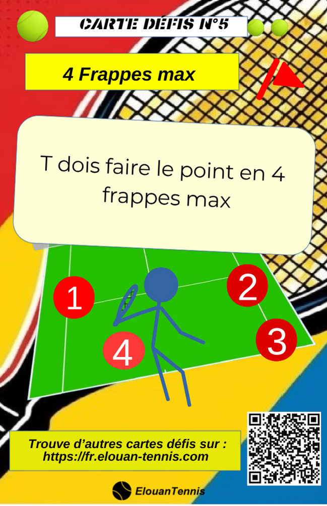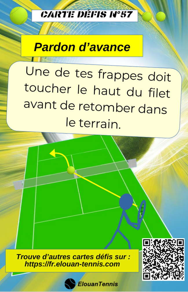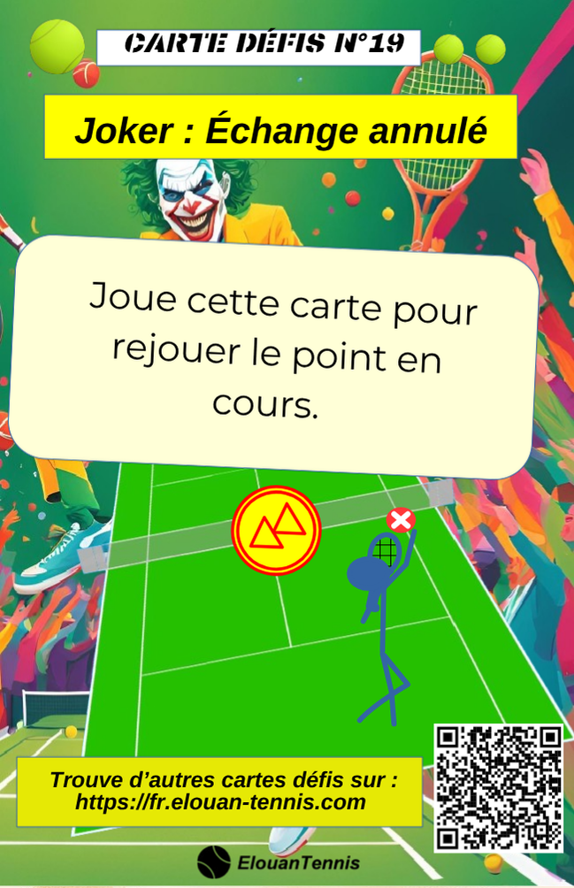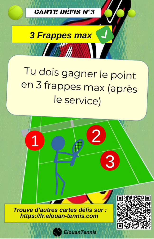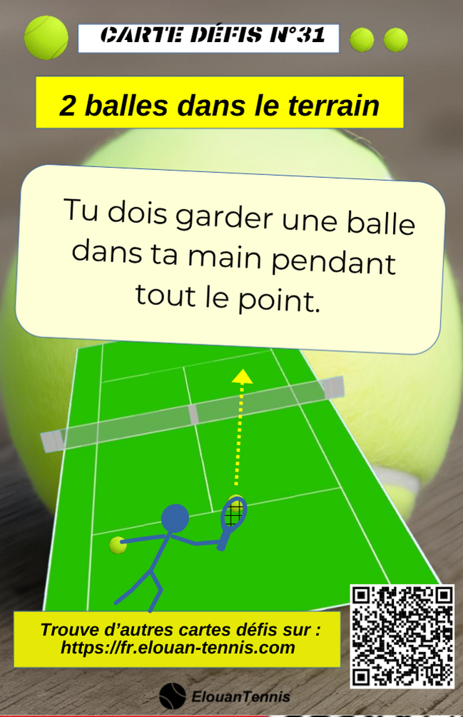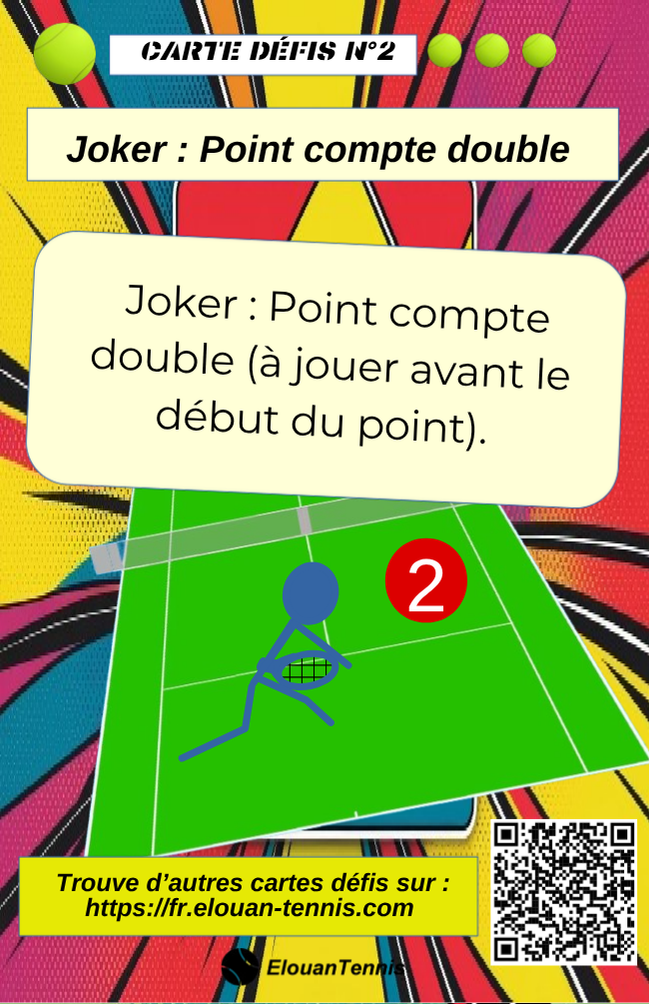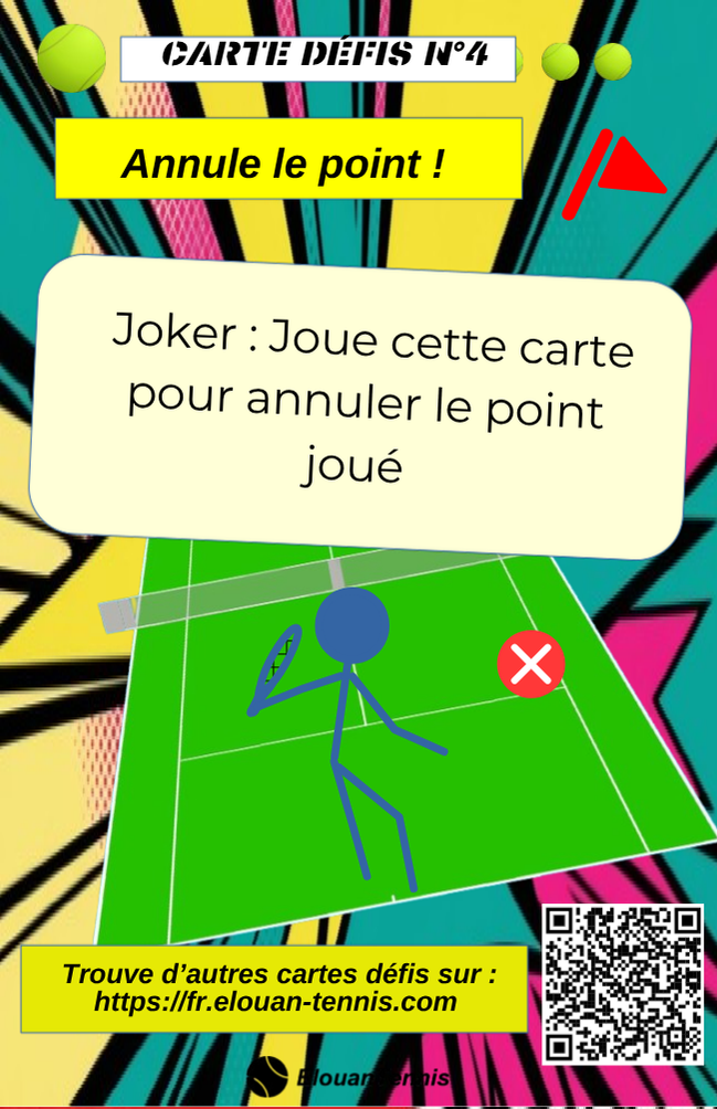 Pimente tes matchs d'entrainement avec des cartes défis tennis... Il y a plein de manière de jouer... Sur cette page tu peux télécharger gratuitement des cartes défis à imprimer