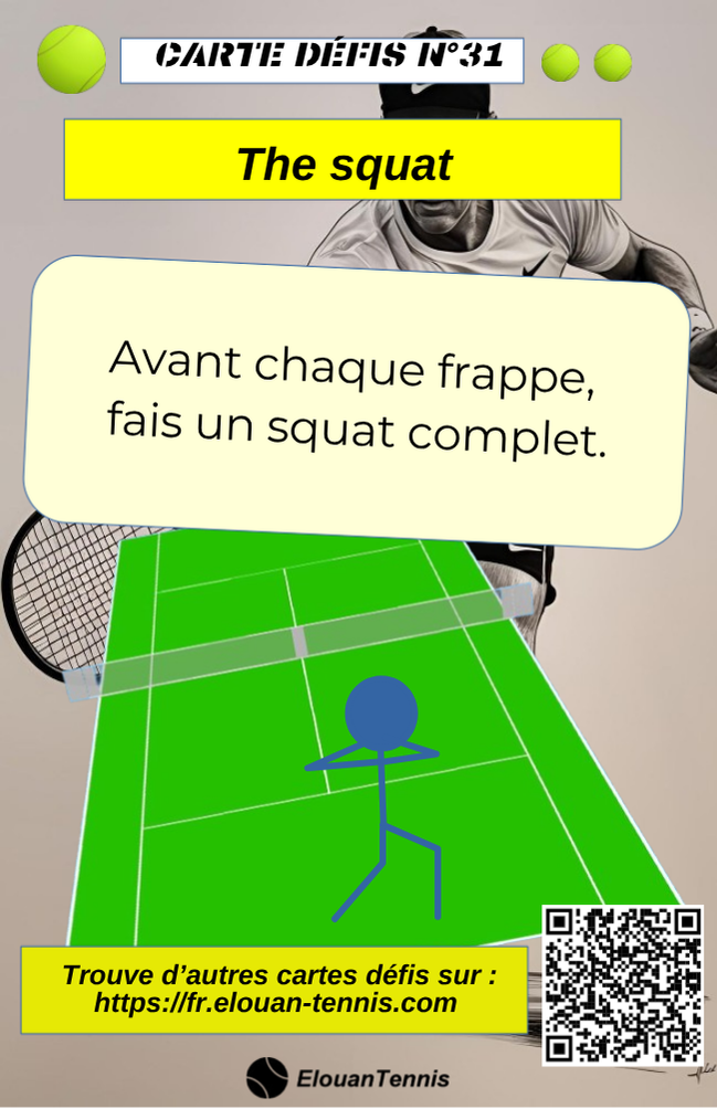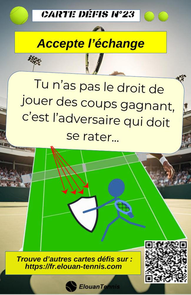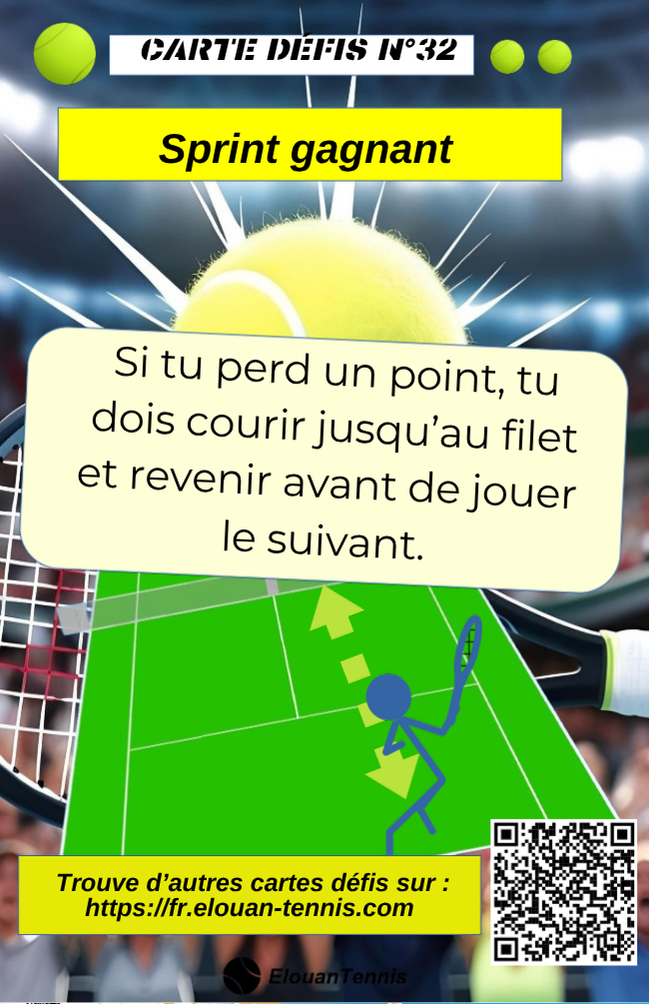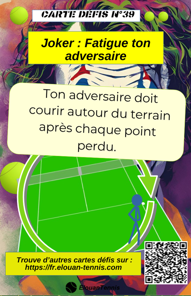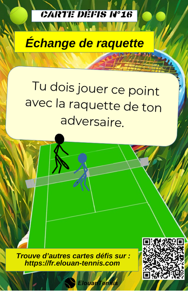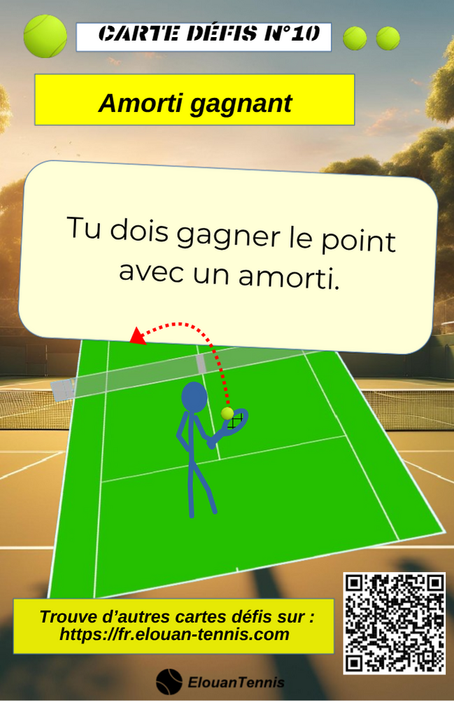 Pimente tes matchs d'entrainement avec des cartes défis tennis... Il y a plein de manière de jouer... Sur cette page tu peux télécharger gratuitement des cartes défis à imprimer