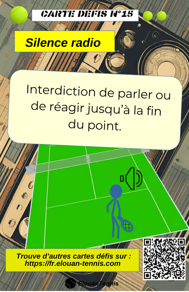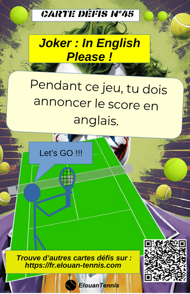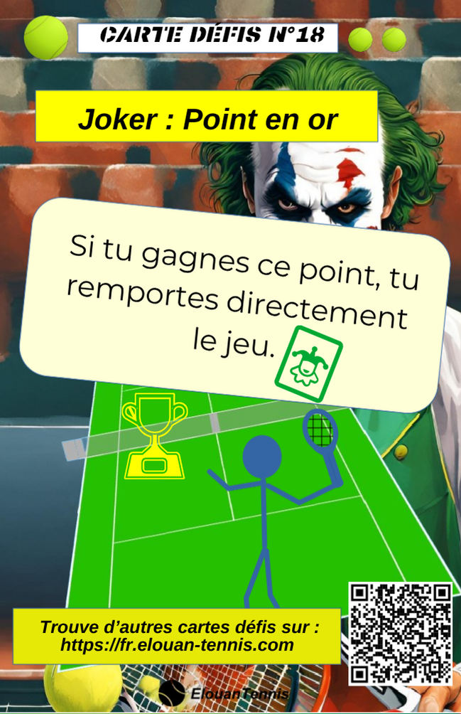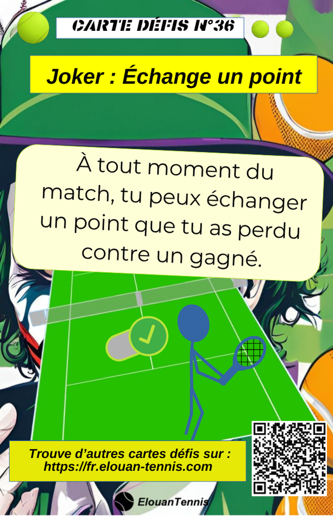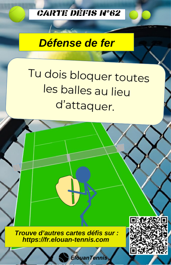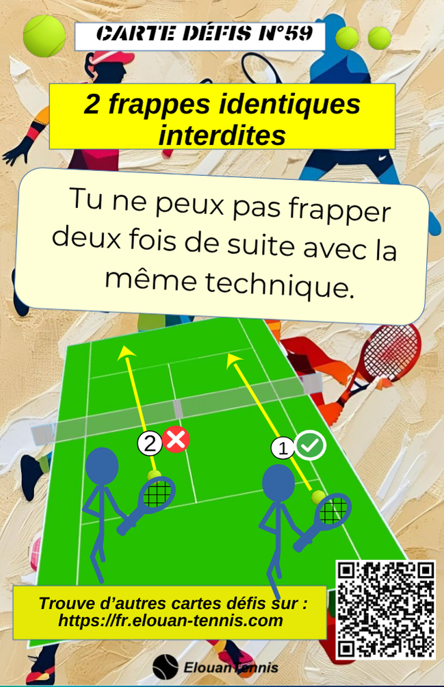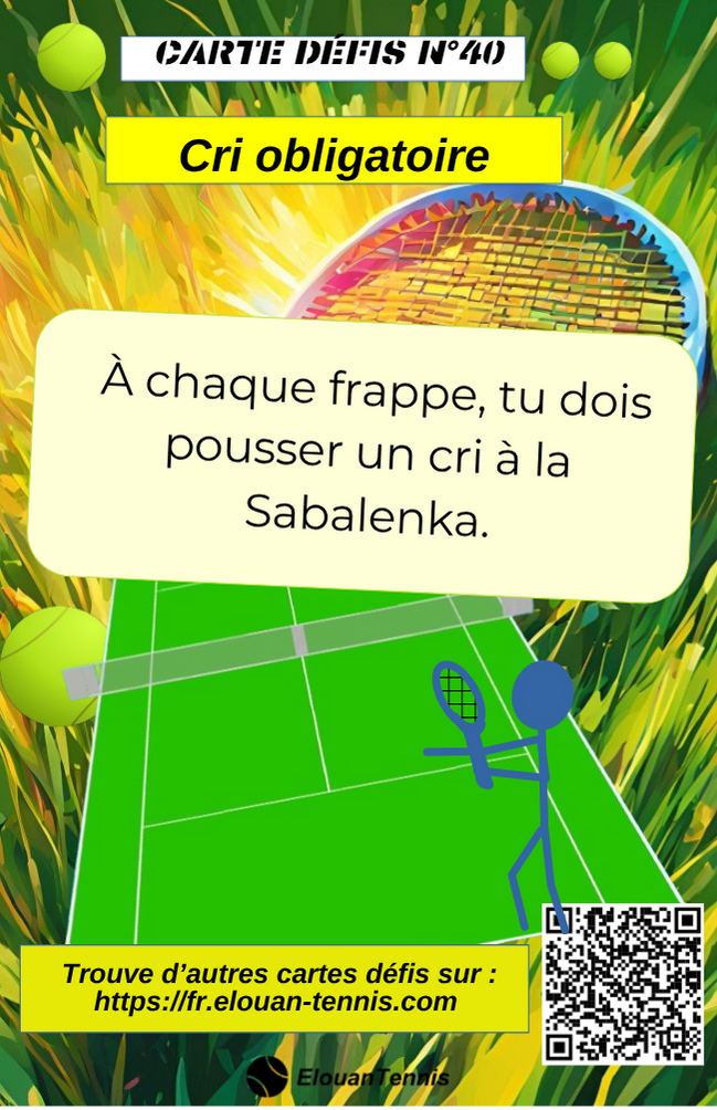 Pimente tes matchs d'entrainement avec des cartes défis tennis... Il y a plein de manière de jouer... Sur cette page tu peux télécharger gratuitement des cartes défis à imprimer